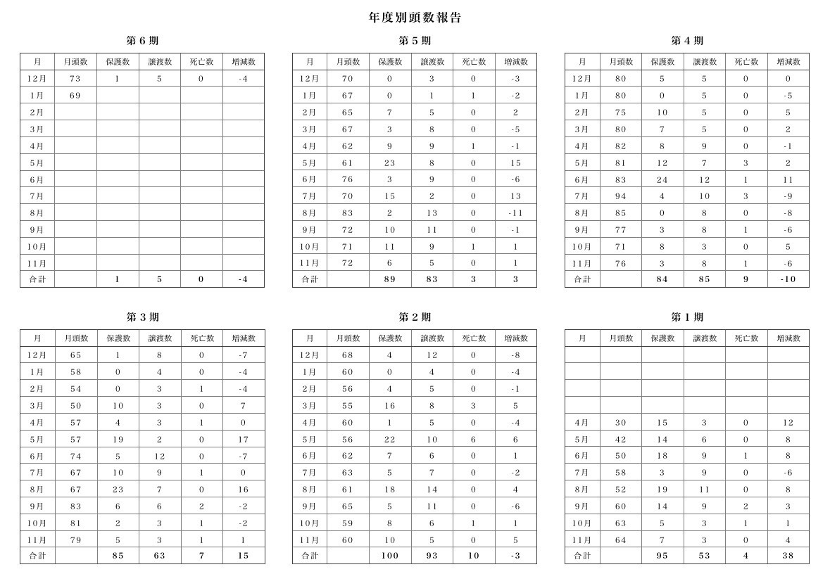 現在在籍頭数 69 匹 (里親様募集中)